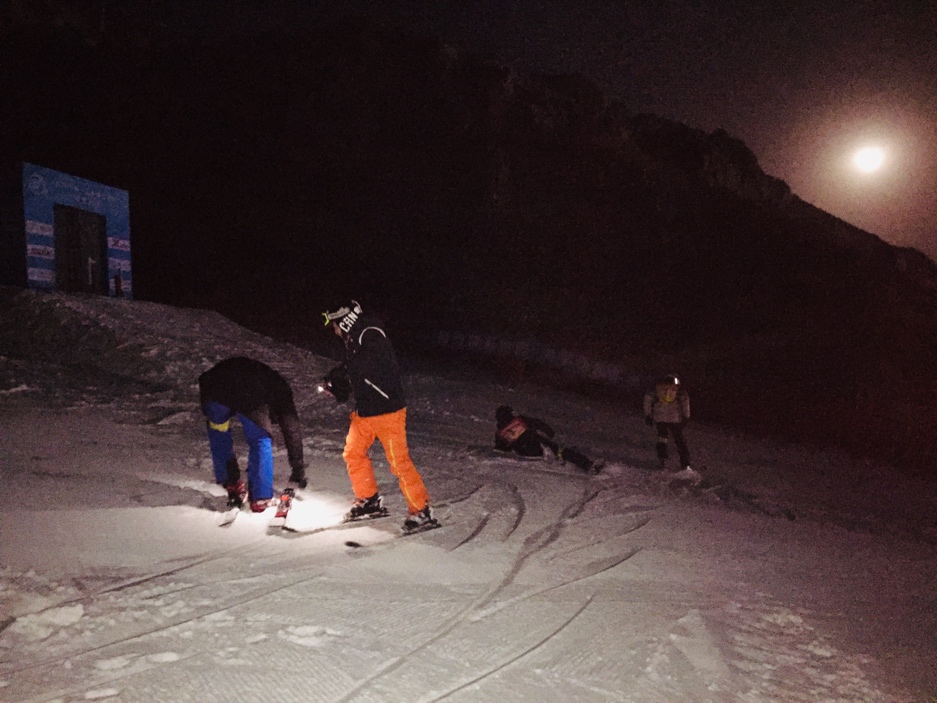 作为北京市第一届冬季运动会,社会各界给予极大的关注度,对裁判员也有极高的要求。天将破晓,战队队员已到达雪场,等待运动员进场。由于本次比赛具有参赛人数多、参赛运动员年龄小、工作人员少等特点,每名滑雪战队队员都身兼数职,多岗位工作。由于比赛是不间断进行,队员们的午餐只能在雪道旁简单吃些面包、能量棒等方便食物。夜幕降临,队员们也没有收工,为第二天的比赛更换旗门、检查线路、平整雪道以及准备第二天比赛所需物资。